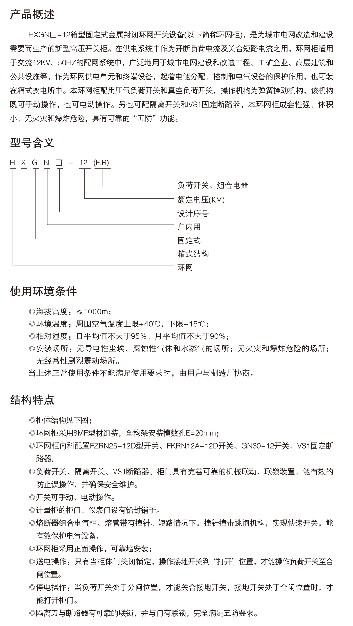 HXGN口-12箱型固定式金屬封閉環(huán)網(wǎng)開關(guān)設(shè)備