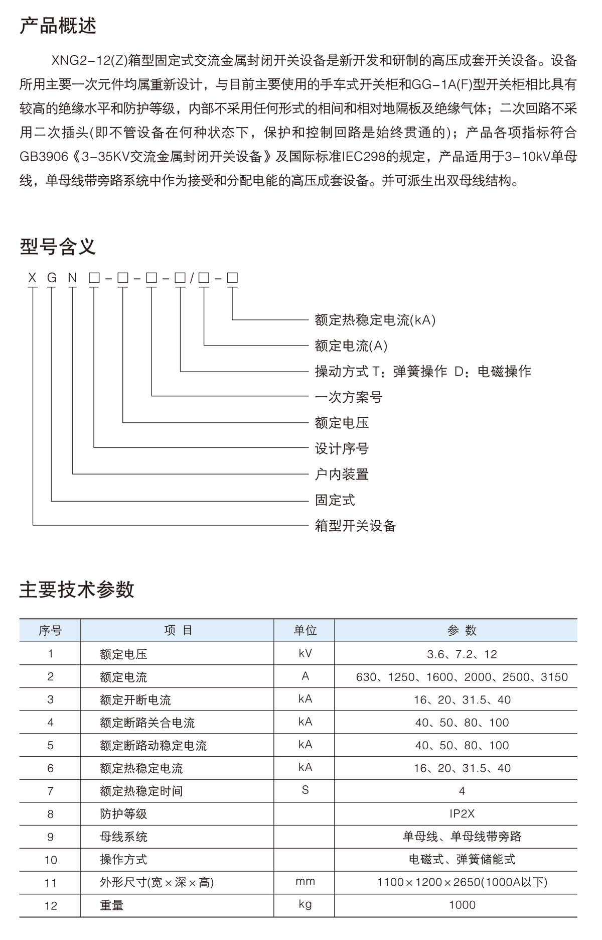 XGN2-12(Z)箱型固定式交流金屬封閉開關(guān)設(shè)備