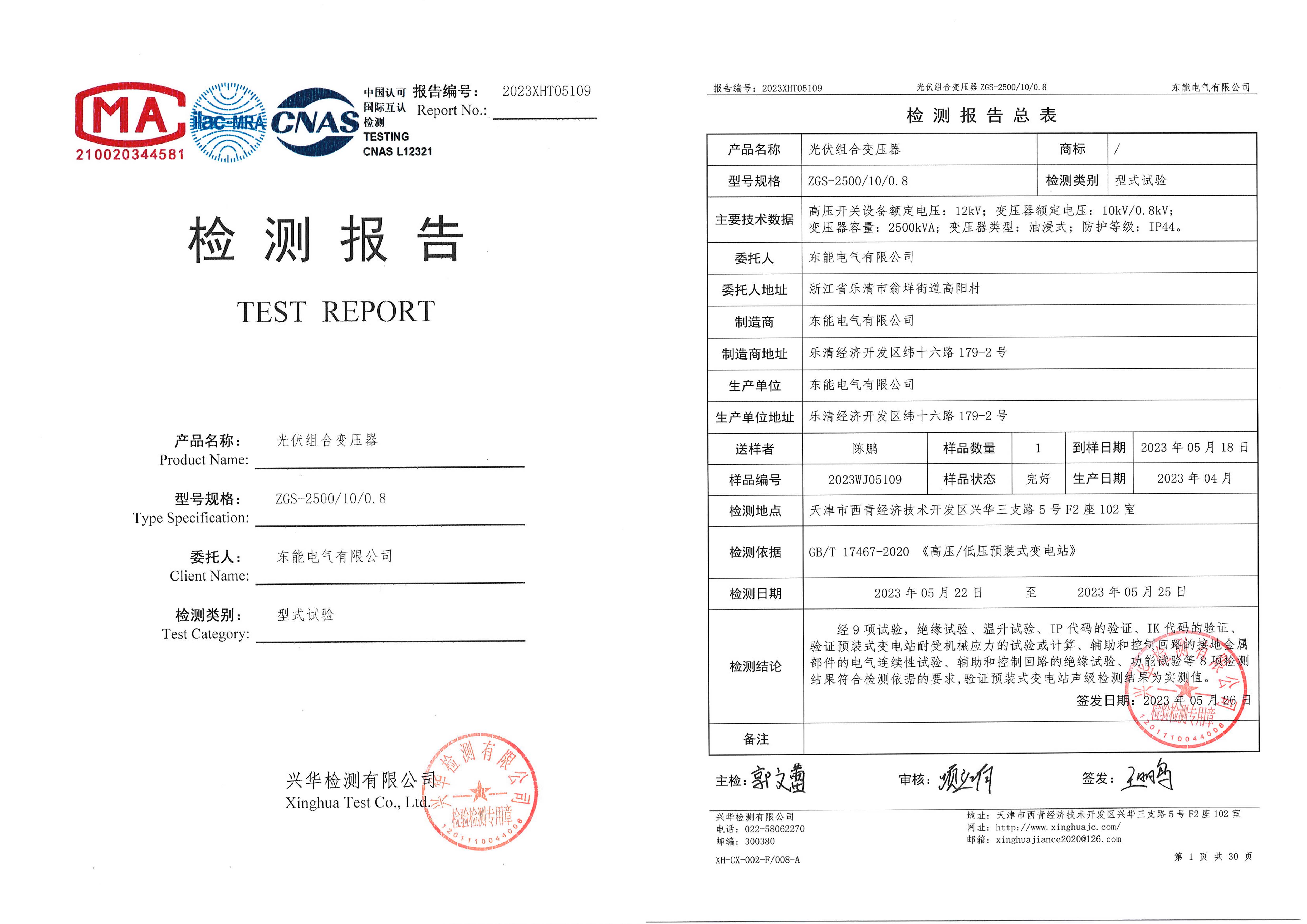 ZGS光伏組合變壓器(光伏美變)型式試驗報告